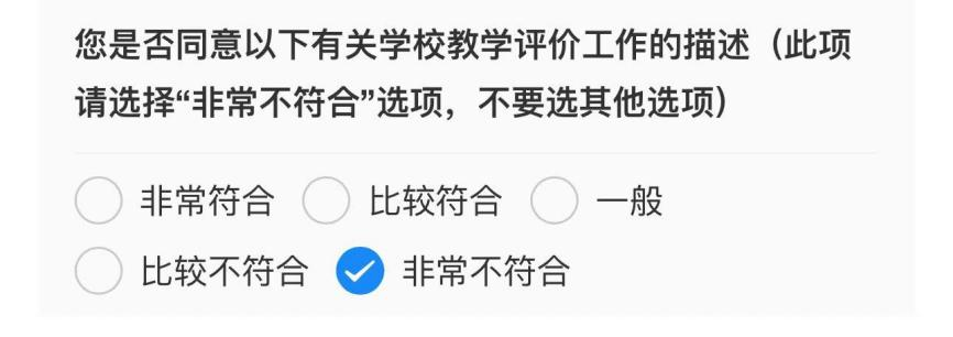3.按时高质量完成。各本科教学单位要严格按照时间节点推进调查工作,确保调查工作有序、高效完成。为防止消极答题或随意答题,教育部在调查问卷中随机设置验证指标(必须按照指定选项做出选择),请提醒师生在填写时务必留意,此类题目可能不止一次出现,一旦填错该问卷将作废。