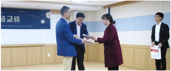 代表团向忠北大学校师生赠送了《边疆考古研究》、《Asian Archaeology》、《汉以前东北考古研究》、《东北考古学研究(一)》等书籍,忠北大学校代表团向91网