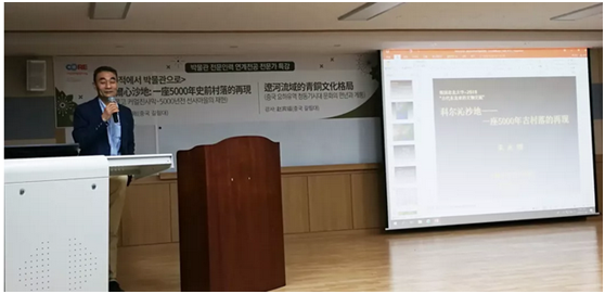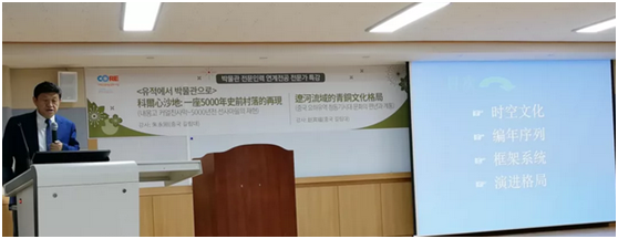 学术论坛召开之前,忠北大学校举行了海外名家考古学讲座,特邀朱永刚教授作了题为《科尔沁沙地——一座5000年史前村落的再现》的学术报告,详细介绍了内蒙古哈民忙哈遗址的考古发掘以及博物馆建设等情况;特邀赵宾福教授作了题为《辽河流域的青铜文化格局》的学术报告,系统介绍了青铜时代辽河流域的时空文化、编年序列、框架系统、演进格局。赵宾福教授还就辽河流域青铜文化的特征等问题,接受了韩国MBC电视台的采访。