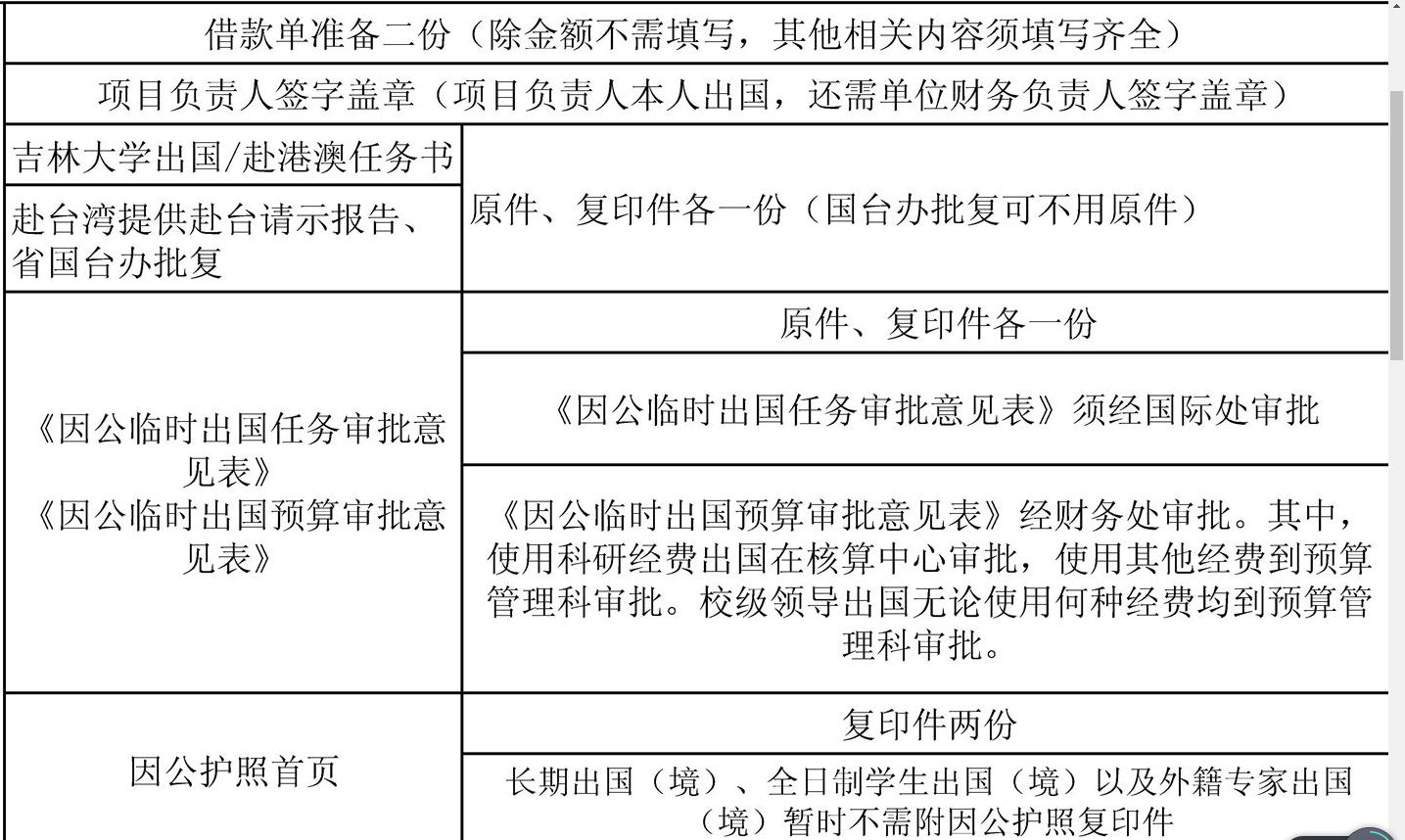 教职工因公临时出国(境)审批表》(国际处网站下载,正反面打印,1份)