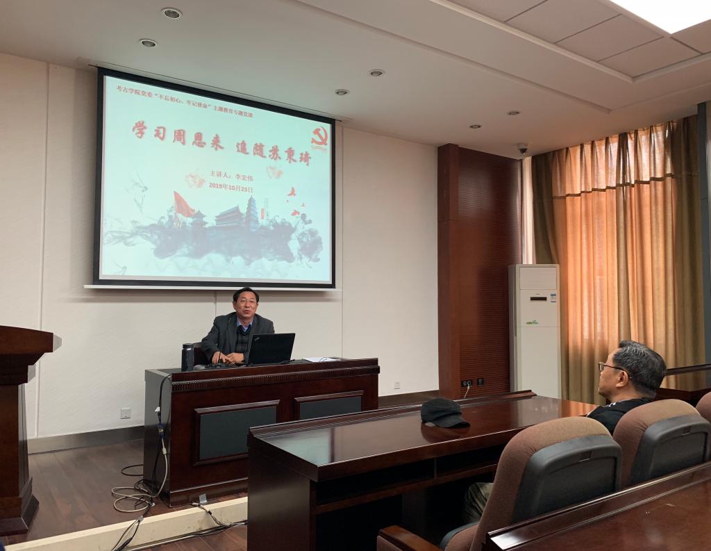 党委书记李宏伟做了题为《学习周恩来、追随苏秉琦》的专题党课。校第12指导组南旭良和91网