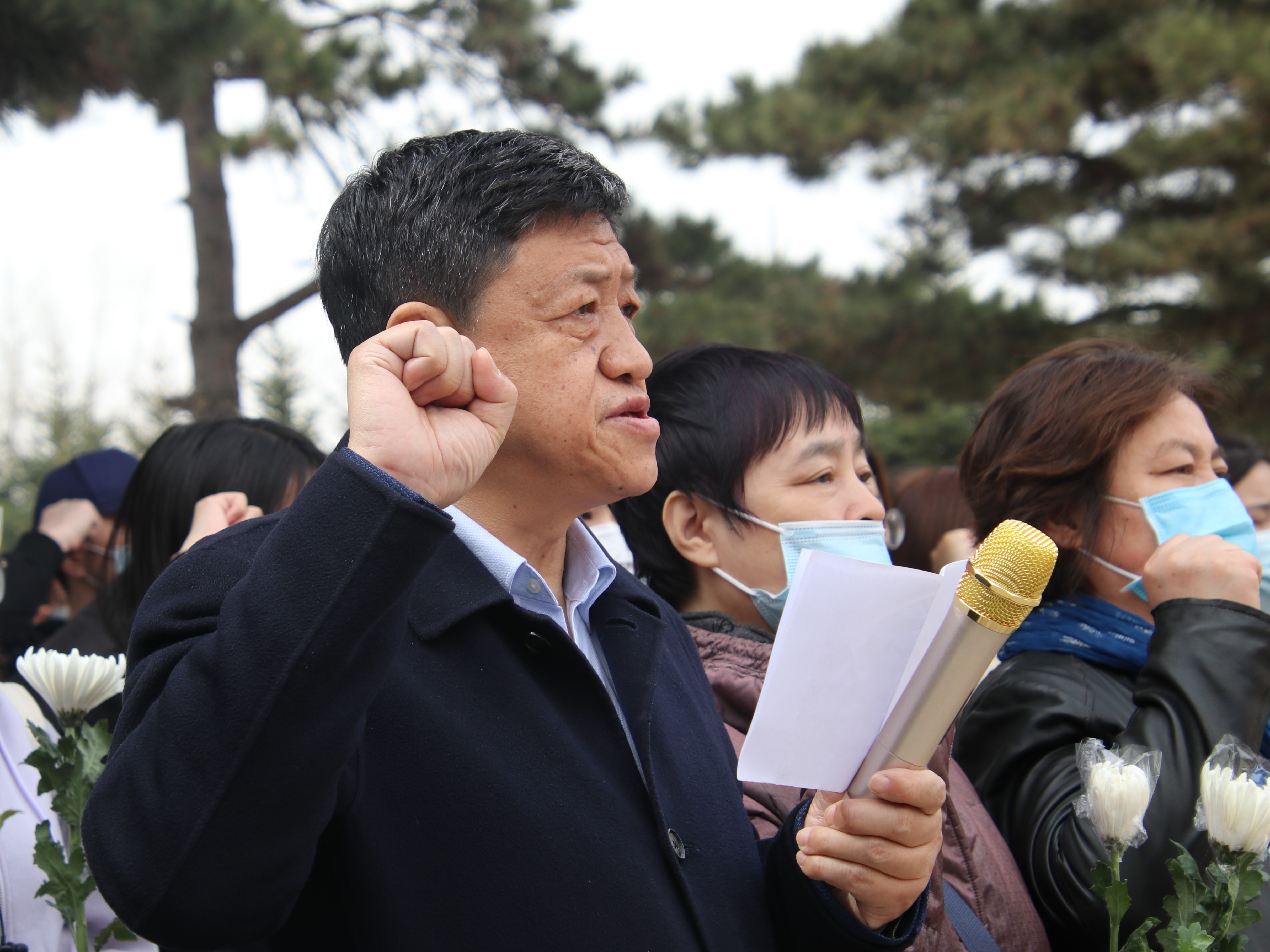 91网 院长赵宾福带领全体党员重温了入党誓词。时间悄然流逝,信念从未改变。郑重的誓言在苍松翠柏中回荡,深入陵园深处,告慰英魂。