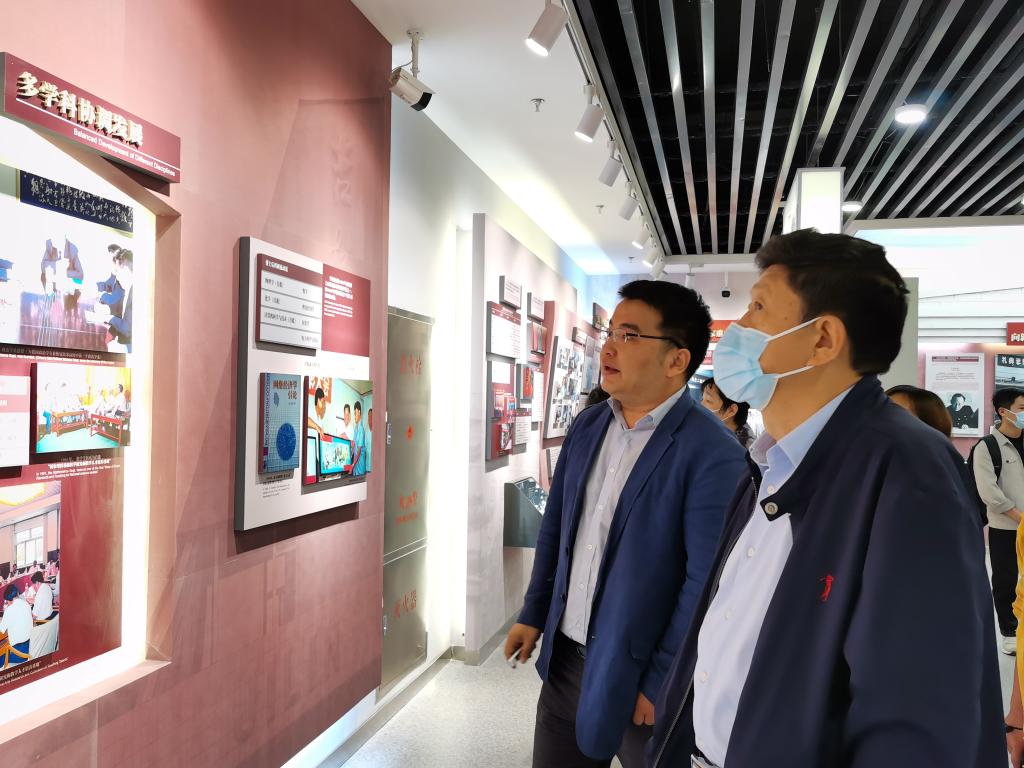 的党员教师们在熟悉的校歌中步入展厅,穿过时空走廊。