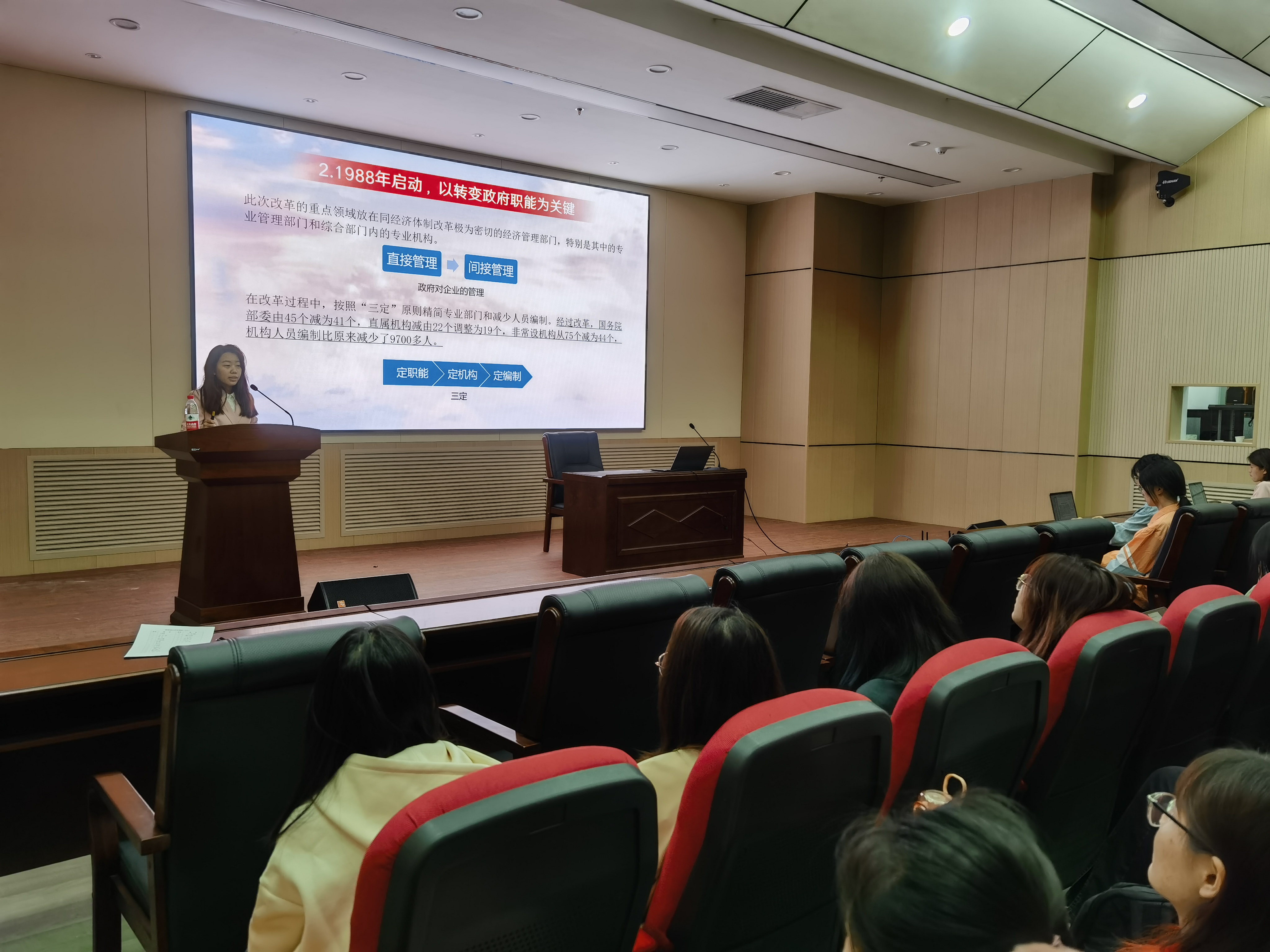 本次宣讲的主题是“凝聚精神力量 激发使命担当”——深化党和国家机构改革,推进国家治理体系和治理能力现代化,主讲人是行政学院博士研究生李璐雅。通过此次宣讲,使研究生党支部党员、预备党员、助管、研究生干部们全面、系统、深入学习了习近平新时代中国特色社会主义思想的相关内容以及两会的重要内容,更加完整、准确的领会了习近平新时代中国特色社会主义思想的深厚内蕴、两会精神的深刻内涵以及高质量发展的内生动力。