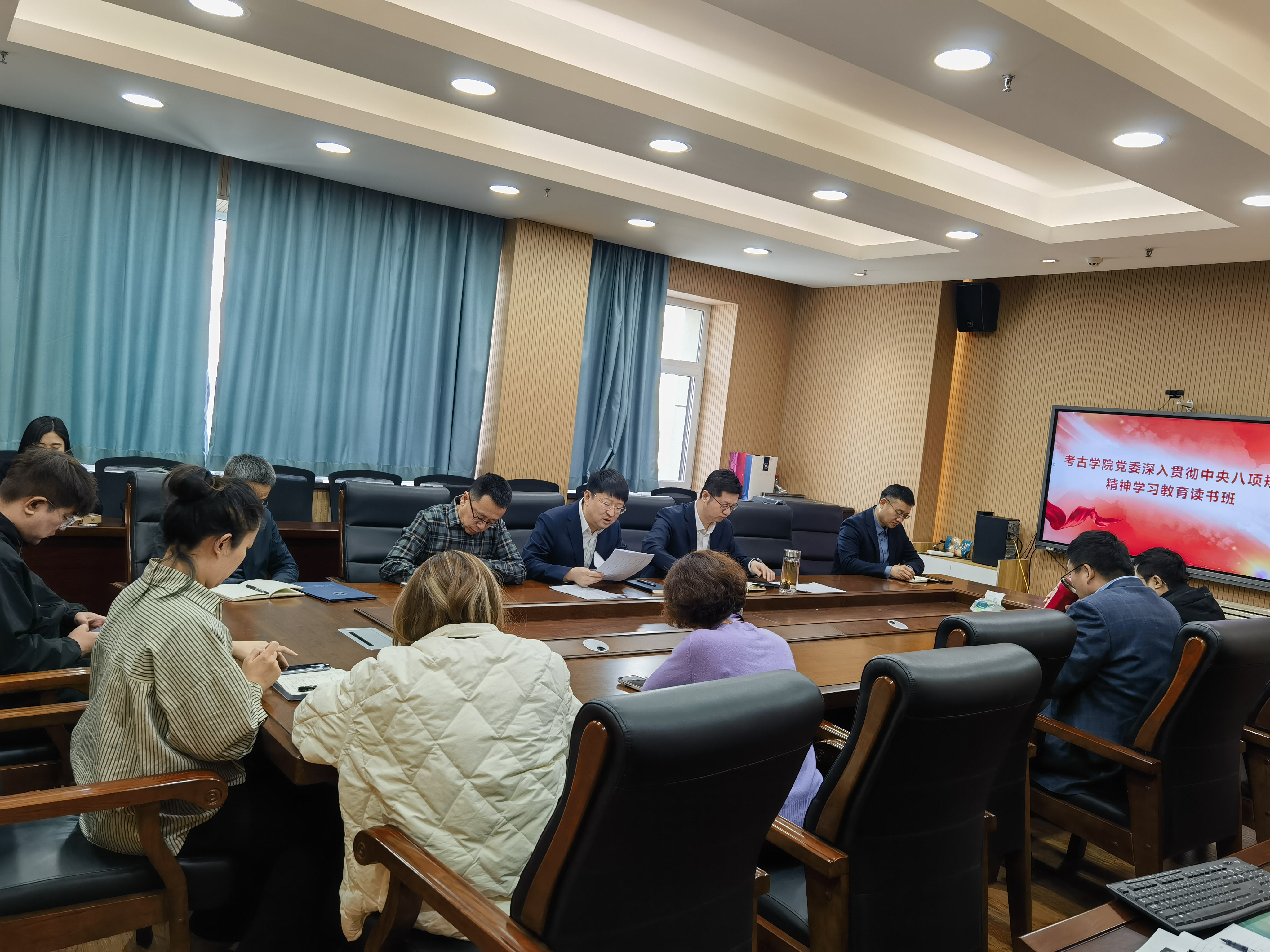 启动部署会后,学院党委举行了深入贯彻中央八项规定精神学习教育读书班开班仪式,并且开展了第一课学习《习近平关于加强党的作风建设论述摘编》内容。