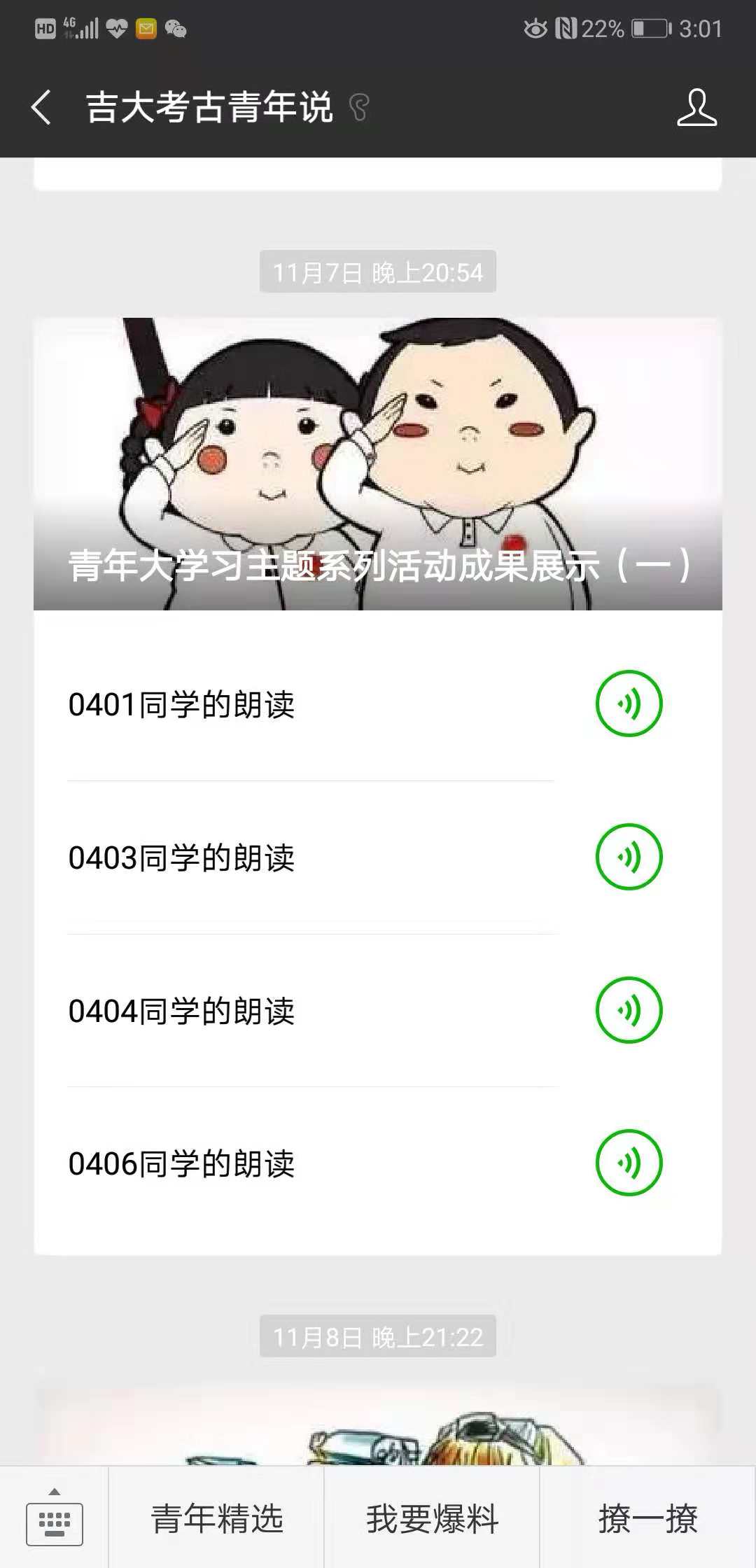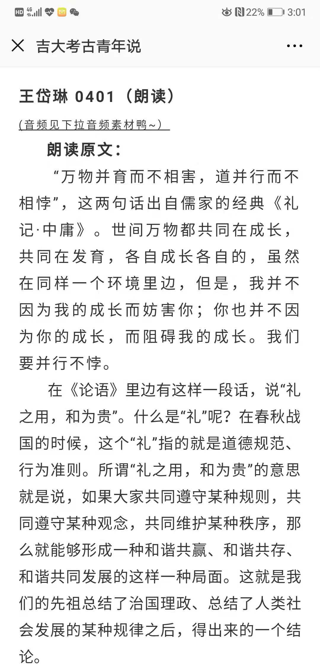 首先,本次推送中吉大考古青年说微信平台首先展示了霍奕然等四名同学的经典朗读音频。其中,我们聆听了91网