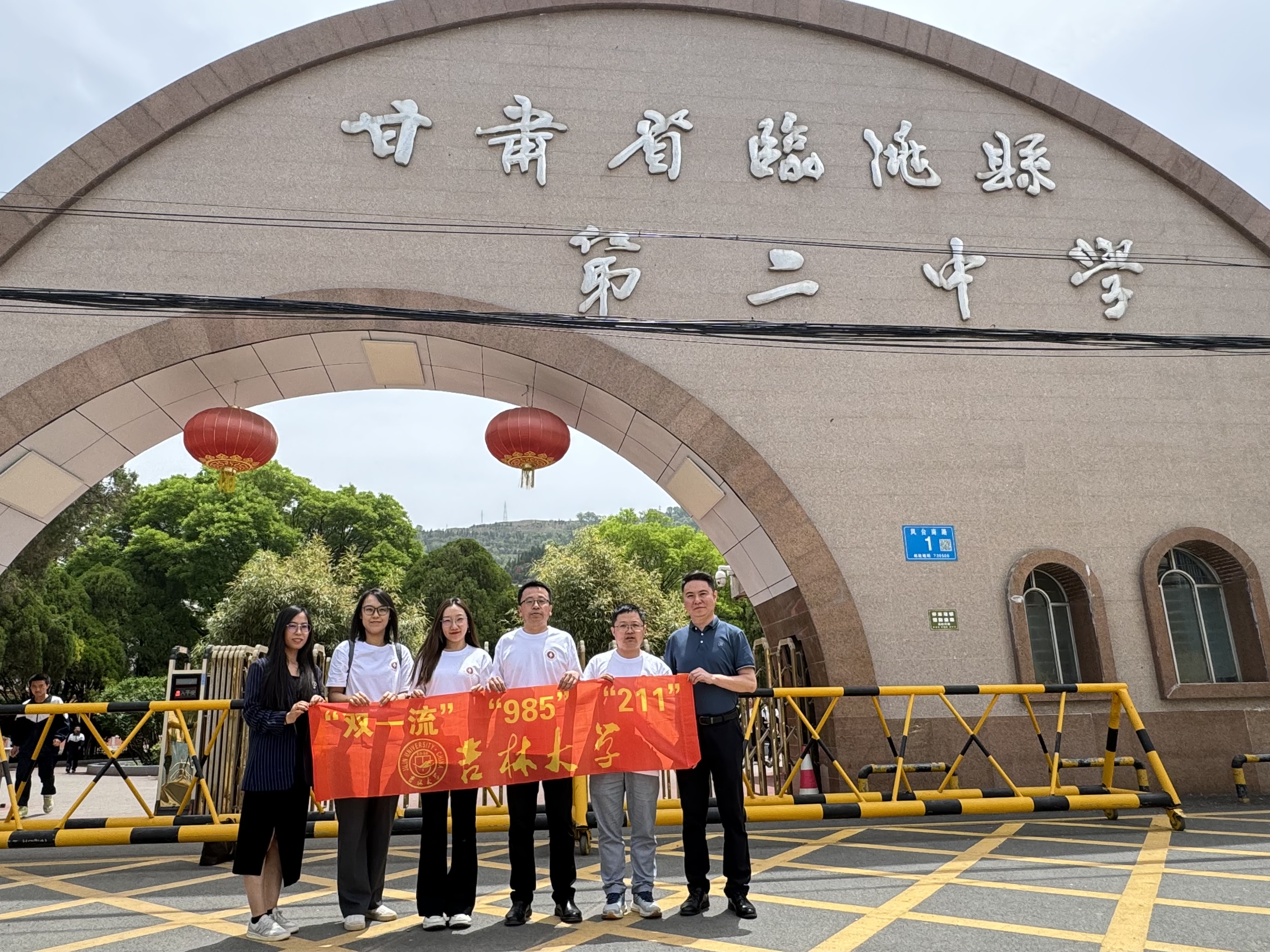 招生宣传团队在学院党委副书记侯建峰带领下走进甘肃临洮县第二中学开展宣传活动。宣讲团一行与临洮县第二中学校长王旭东、副校长高爱军、副校长余文正以及各年级班主任进行座谈。学院党委副书记侯建峰介绍了招生宣传相关情况,任瑞波教授以“筑梦起航在吉大”为主题展开宣讲,双方就招生政策、创新宣传形式等相关问题进行了交流探讨。随后,宣讲团走进高三重点班教室,与学生面对面展开交流。