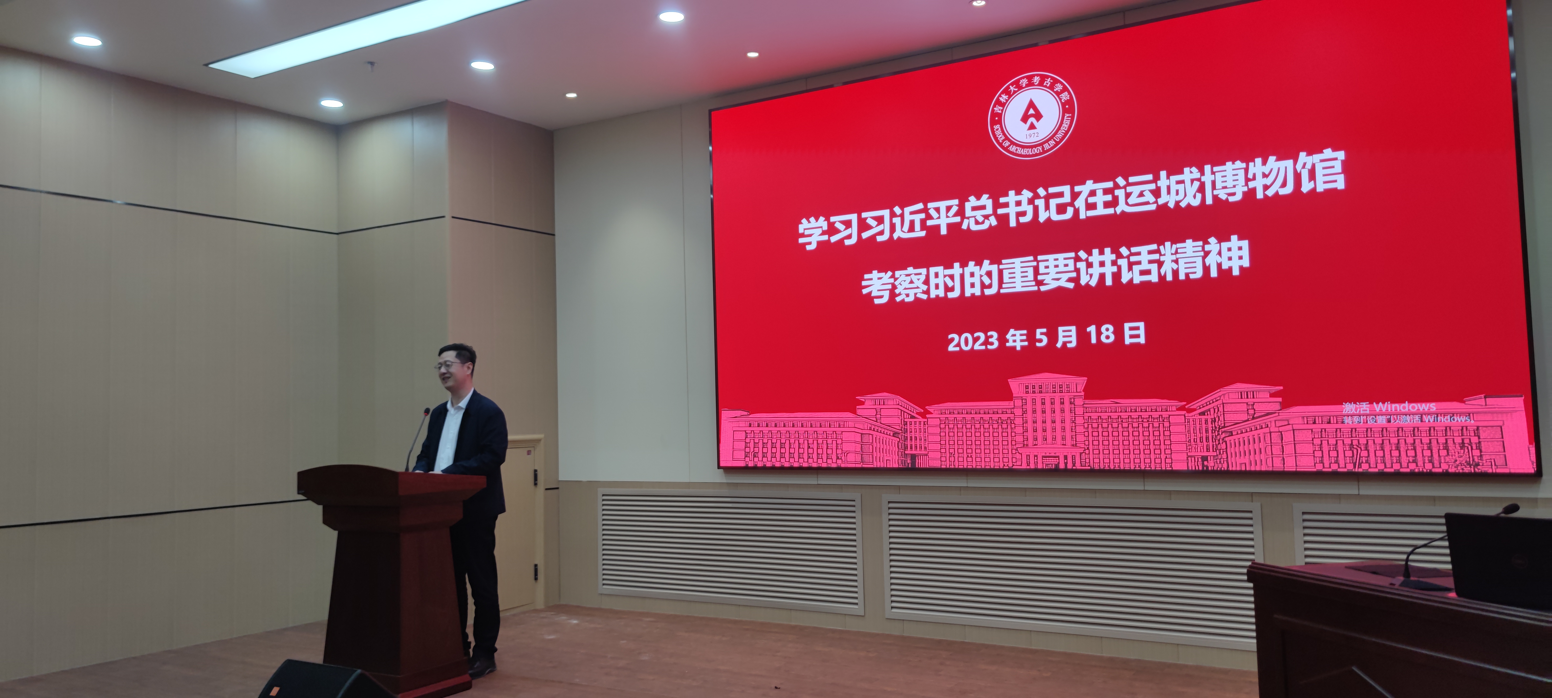 本科生党支部开展联合学习,学习5月16日下午习近平总书记考察运城博物馆的重要讲话精神。会议由学院党委书记王巍主持。