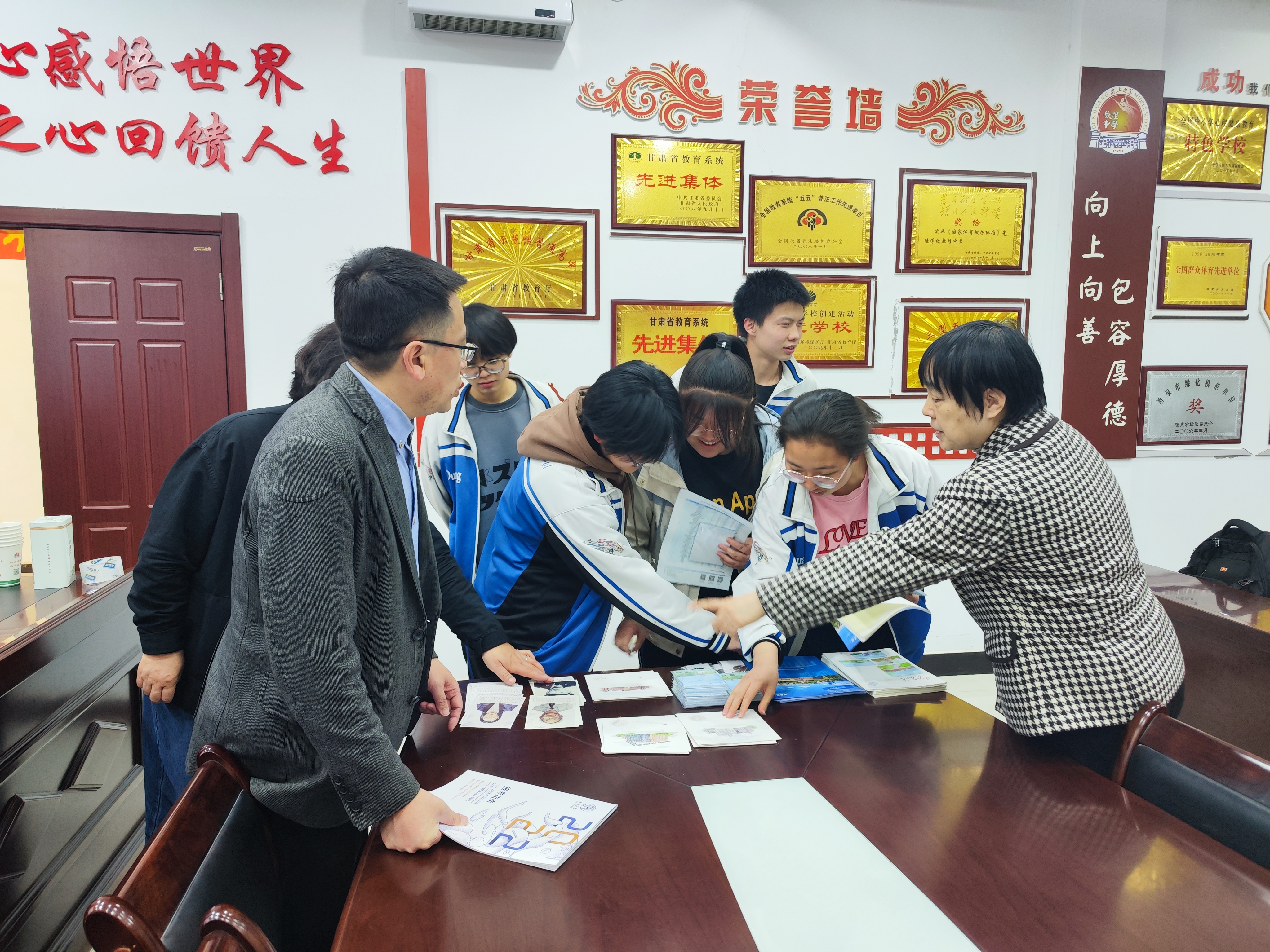 招生宣讲团走进甘肃省敦煌中学,与敦煌中学校长刘亚明、副校长卢明、招生负责人陈肃宏举行工作会谈。