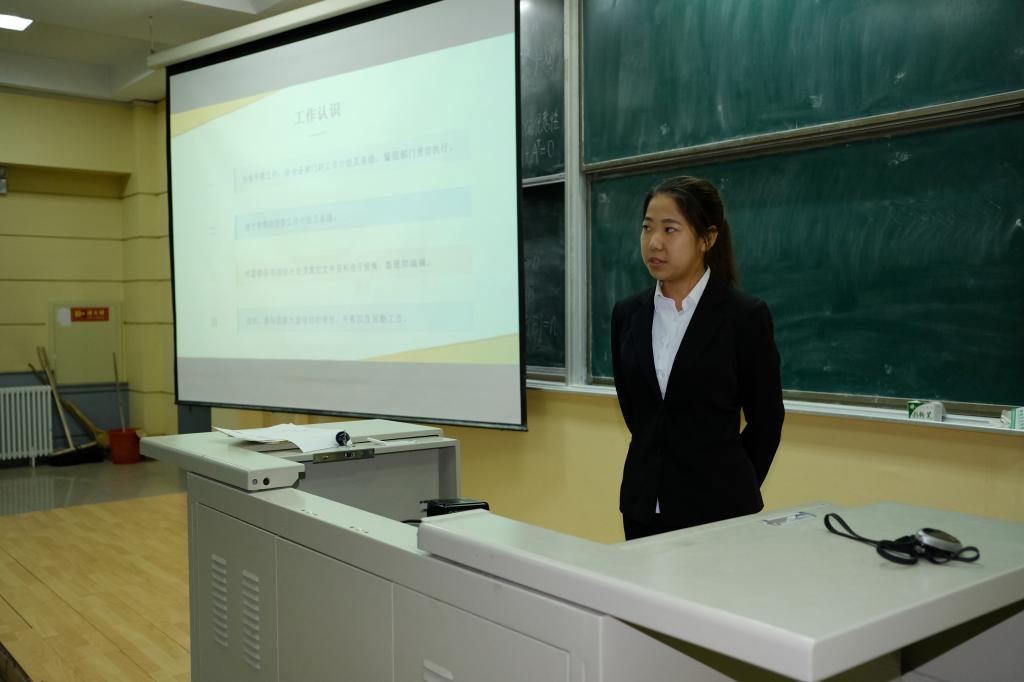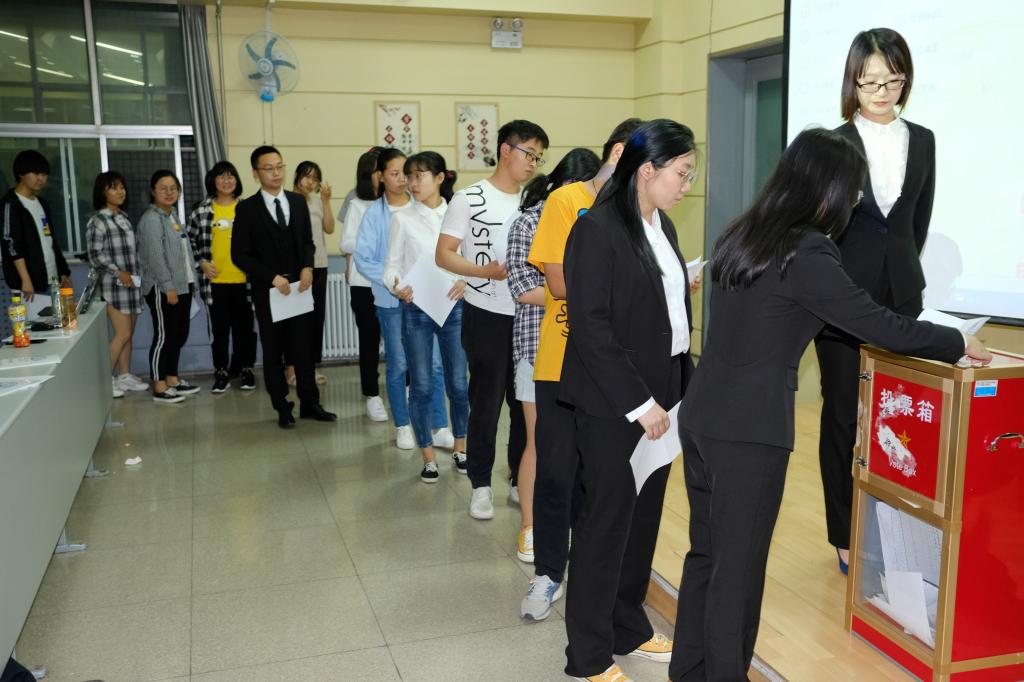 随后,各位团学组织竞选人上台述职,台下的老师及同学们认真聆听。答辩过程中,竞选者们以最饱满的精神状态向与会人员讲述了自己所参与开展的活动、取得的成就并表达了自身对学生工作的热爱及对未来工作的期许。随后,总监票人吴天聪主持了接下来的投票环节。此次选举采取无记名投票的方法,差额选举出高千娇、耿默兰、刘锡甜等15位同学,与上届留任委员毕桐馨、李明轩、连胜男组成了18人的91网