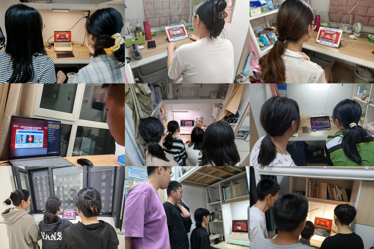 》。因天气原因,学生们以寝室为单位在线收看讲座直播。