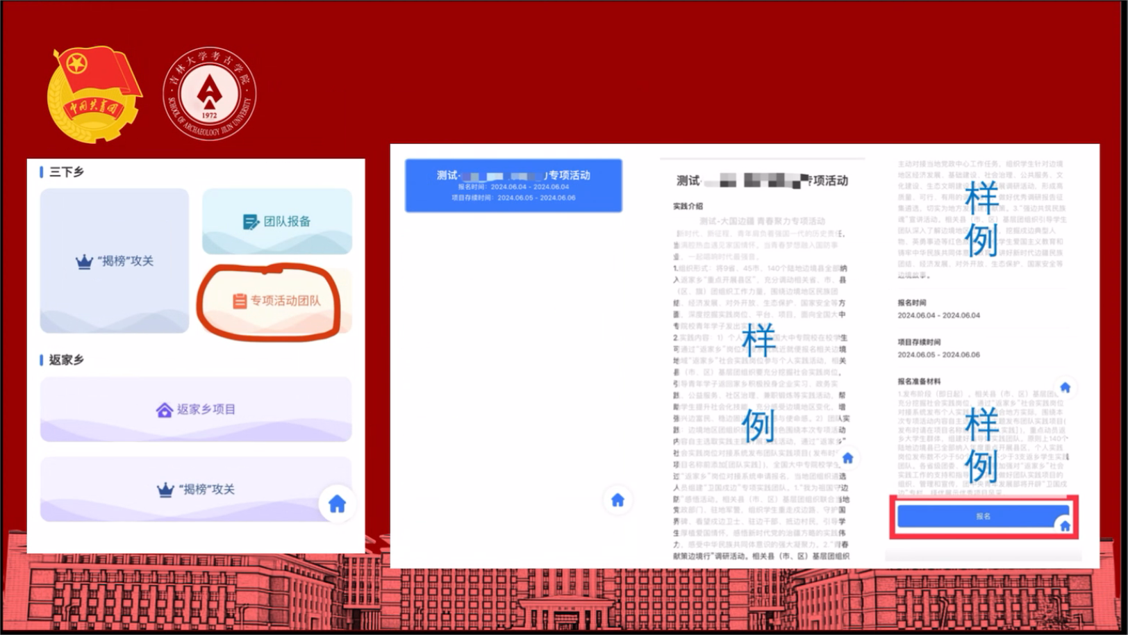 会议分为三个部分,首先,向大家介绍了本年度暑期社会实践活动的主题和相关内容。其次,介绍了“创青春”全国大学生社会实践管理服务平台的使用方法,帮助大家更好地了解新平台,并利用其进行社会实践项目申报与实践材料提交。最后,号召同学们作为新时代青年,应积极参与暑期社会实践活动,聆听风声雨声、体察时代脉搏,在祖国大地上汲取成长养分、增强责任意识。鼓励同学们用实际行动服务群众、回馈社会,将自身所学与国情社情联系在一起,在祖国最需要的地方淬炼青春、茁壮成长。
