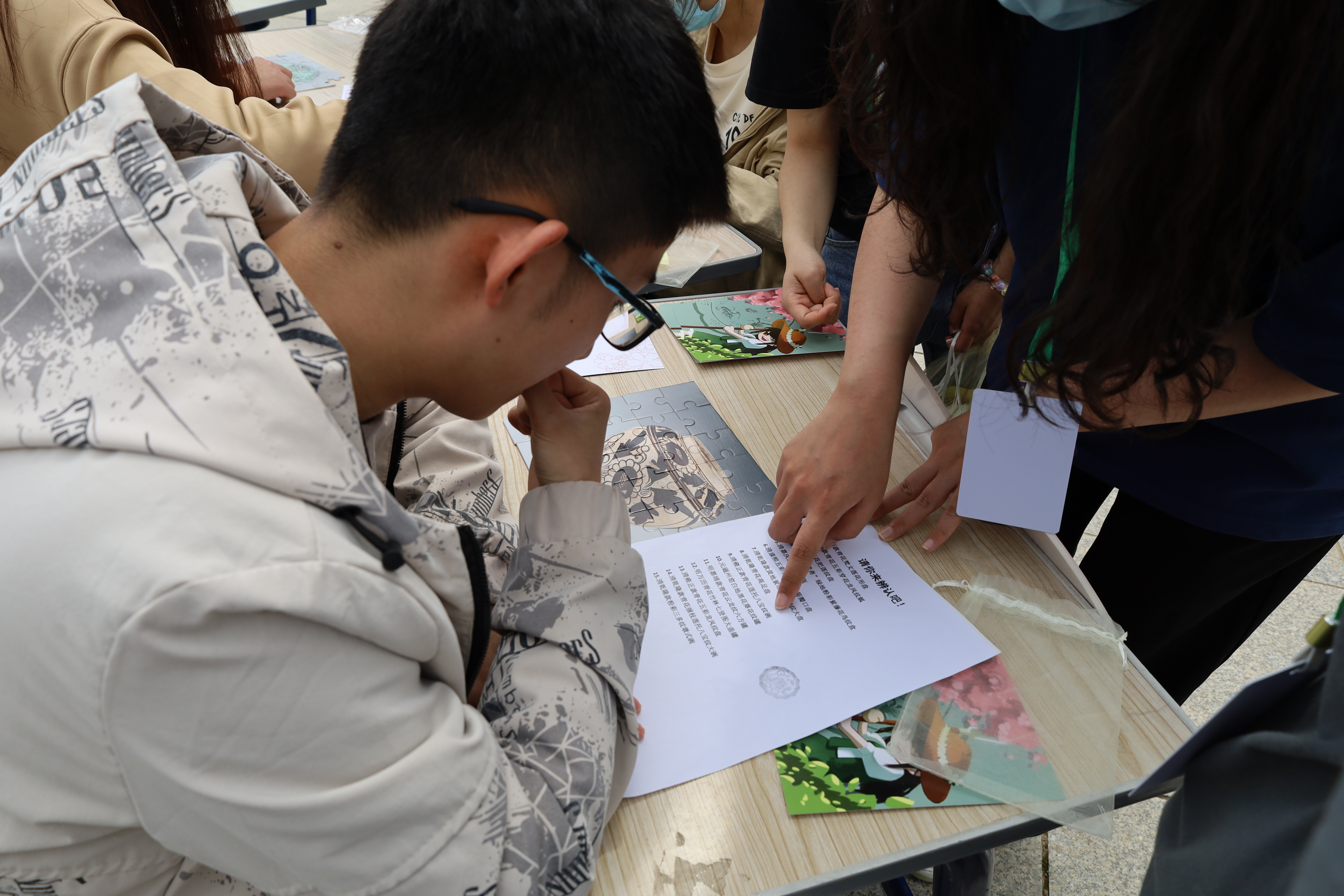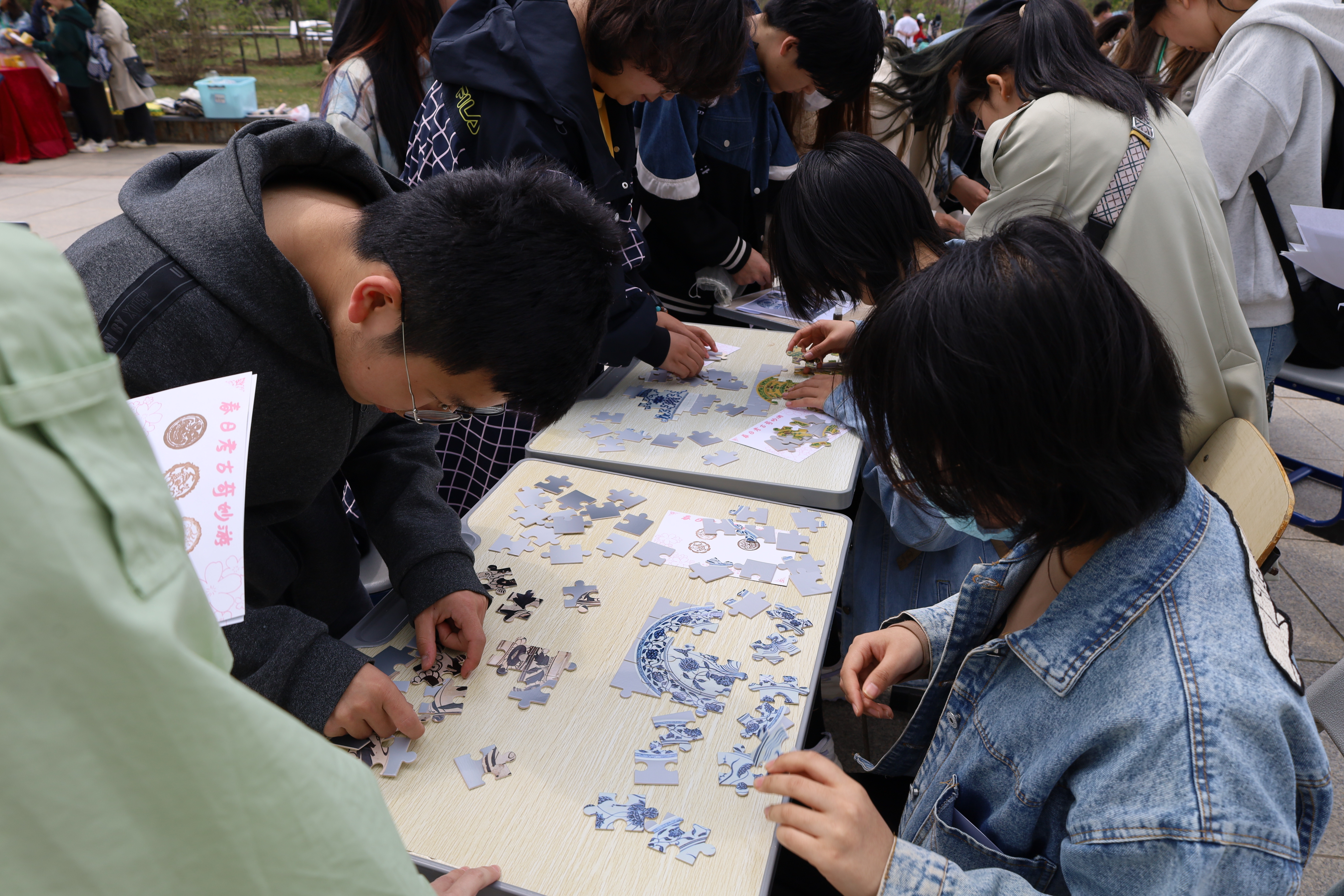 陶瓷古器之美,是超越语言的心动。以拼图为载体,小小“文物修复师”们竞相在短短几秒内辨认出各部位并进行拼合。当样图一点点浮现原貌,即古老文化留在人间的碎片,拼凑出彼时的图景。足以称得上火眼金睛的同学们又随即识破其上的纹饰,磁州窑的白地黑花、明青花梵文盘等文化印记突破空间的距离与时间的阻隔,共同印证这中华文明的无限精彩。