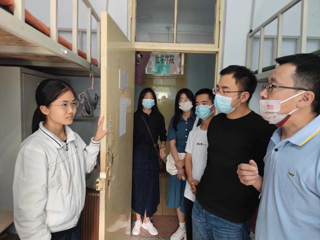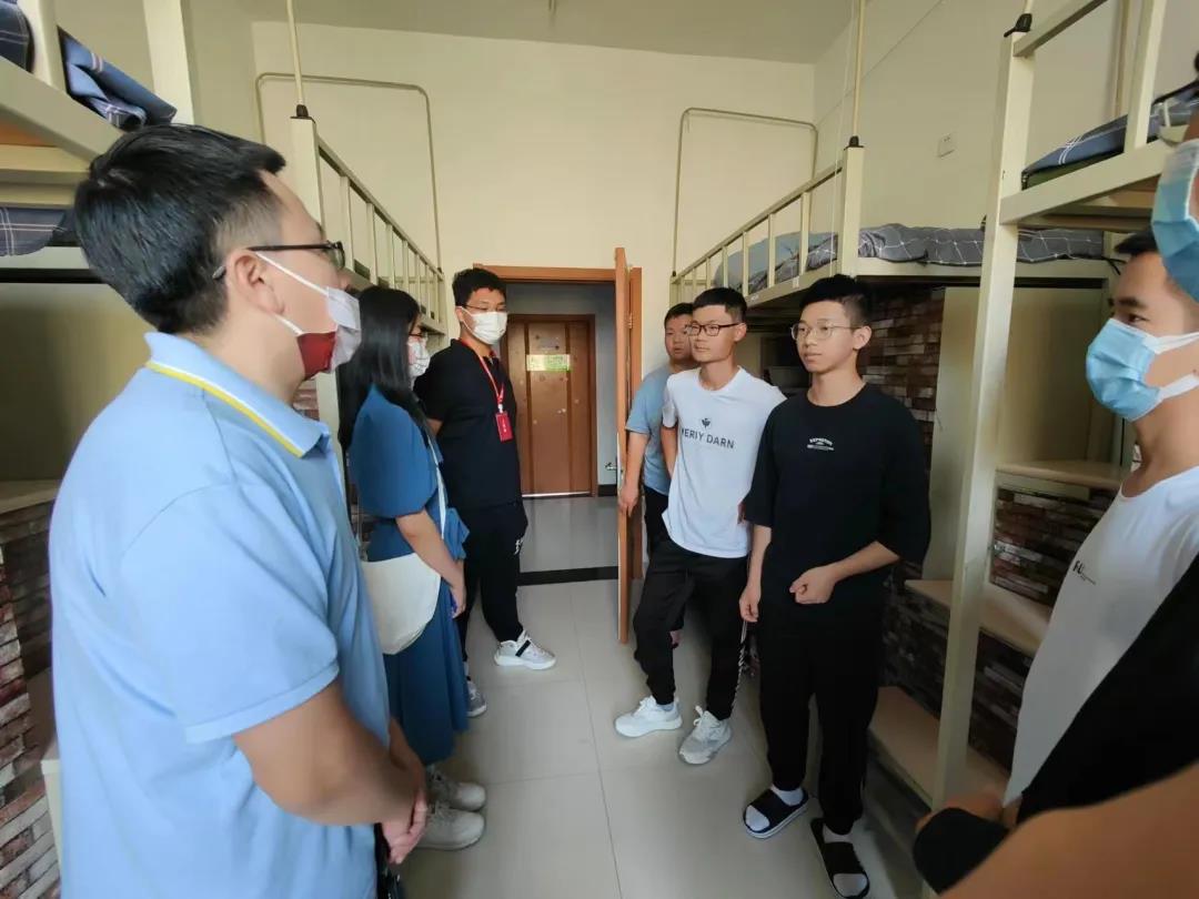 党委副书记兼副院长侯建峰老师代表学院党委书记王巍老师、院长赵宾福老师,与22级辅导员邱泽涵,辅导员助理王克豪、张灵江、张凤怡、禹明岐一同前往北苑学生二公寓和南苑学生二公寓,走访看望了2022级本科新生。