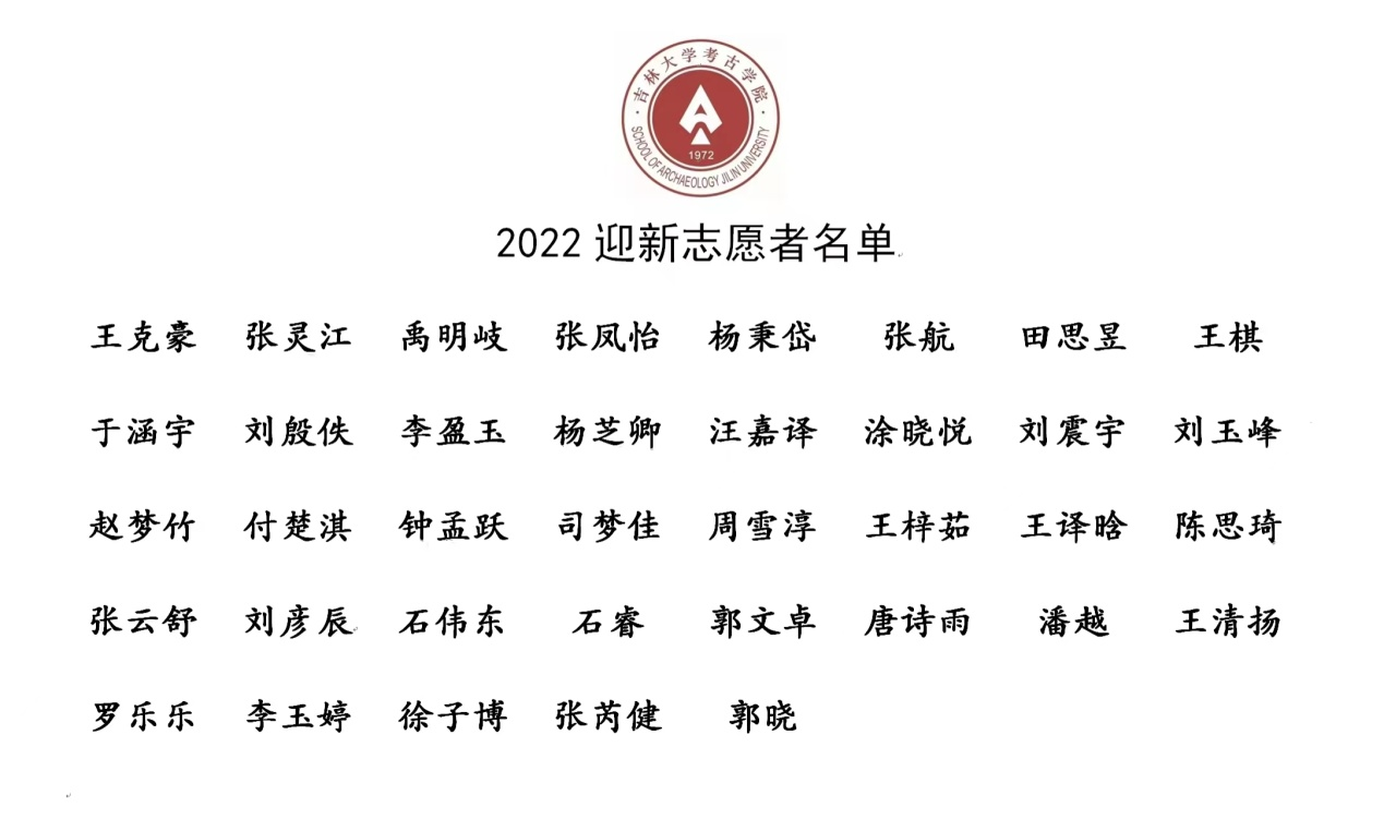 传薪火,燃热血,2022,携梦起航。接过你的行囊,我们就是一家人。新生的加入为学院注入新鲜的血液与活力,希望新生们能够尽快适应与享受大学生活,学习与传承考古精神;期待新同学在大学校园里创造出属于自己的一片天地!