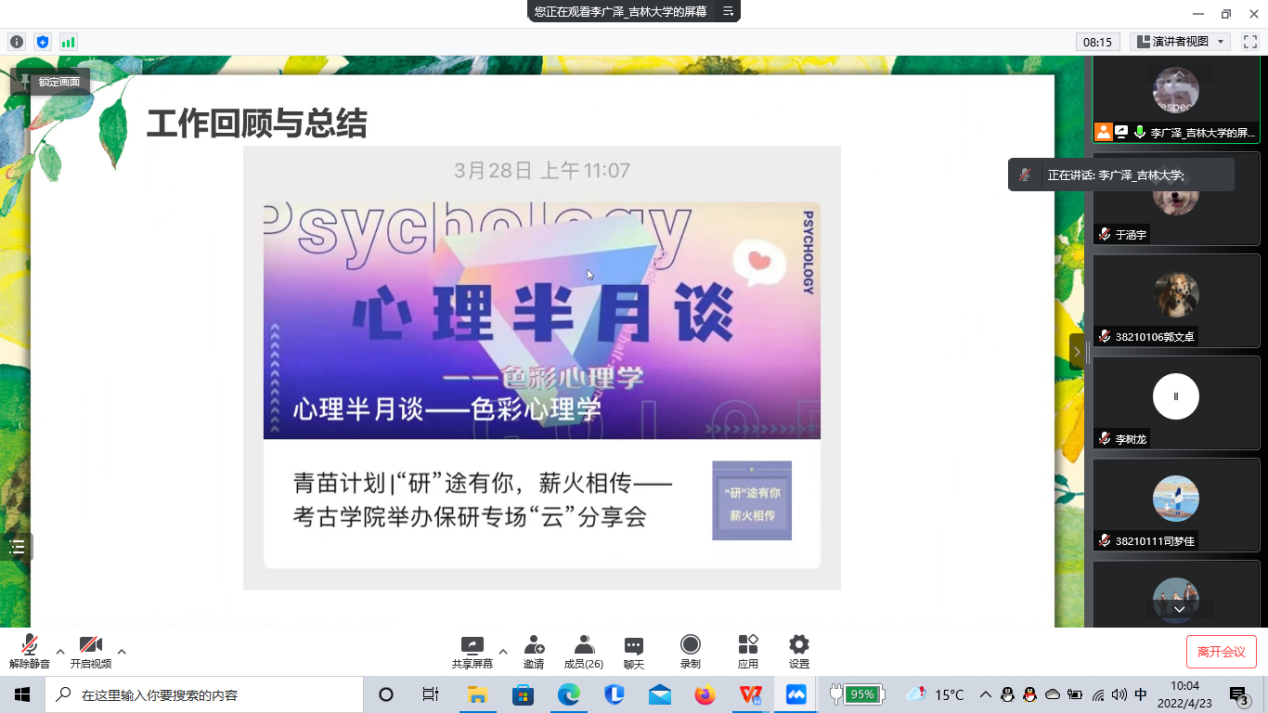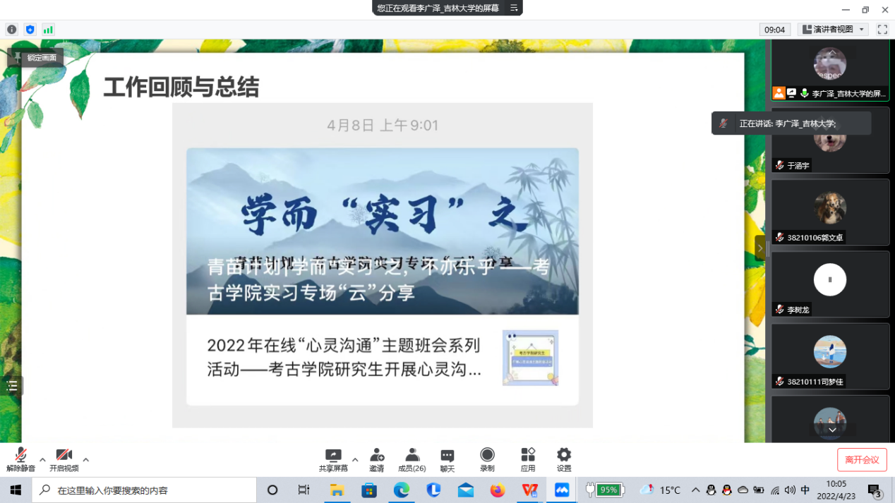 最后,李广泽就即将在5月份进行的换届工作向成员们进行了预告和简要介绍,并对成员们提出的问题做了耐心的解答。