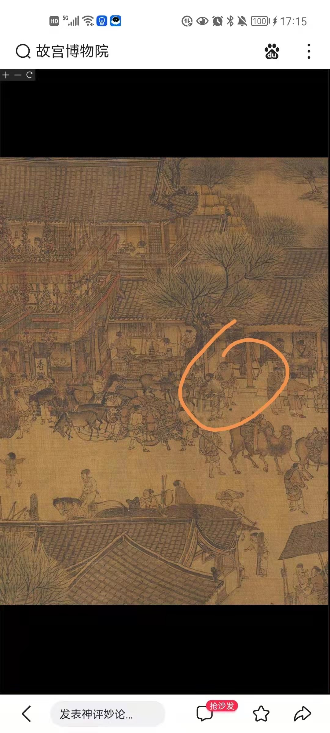 最后,为了丰富同学们的课余活动,减轻疫情带来的焦虑情绪,赵老师开展了《“寻宝”上河图》的小游戏,即从清明上河图中找出老师给的照片中的元素。同学们踊跃参与。通过小游戏,不仅激发了同学们的学习兴趣,舒缓了压力,而且同学们对《清明上河图》有了更深的了解,对宋代的物质文化生活有了多方面的掌握。