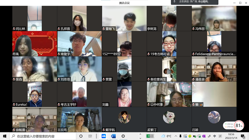 2022年3月14日晚,2019级考古班举办疫情防控主题教育线上班会,会议由2019级考古班班主任林森老师组织召开,团支书温景超同学主持,全体考古班成员参加了本次会议。