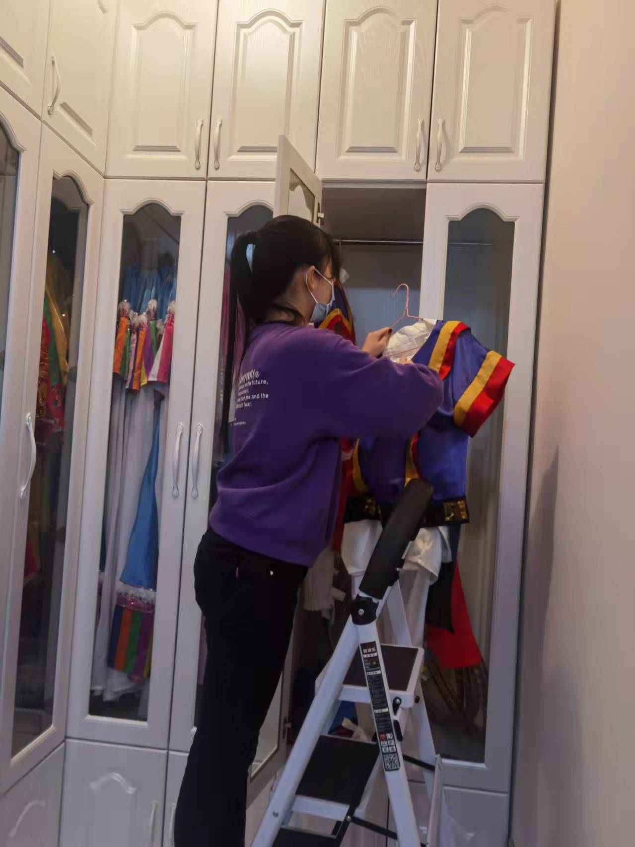 21日清晨八点半,文体文化站开始了一天的工作。李逸然首先和工作人员来到了储物间——这里除了书籍、乐器、表演服装外,还临时堆积了一些防疫物资。在和工作人员一起整理的同时,李逸然也了解了文体工作站的日常工作。整理完防疫物资,工作人员们又一起将摆在外面的朝鲜族表演服装整理好,并挂回衣柜。这些都是朝鲜族传统舞蹈象帽舞的表演服装,是前几天表演完的老乡刚送回来的,未及整理。再看工作站的衣柜,摆满了各色各样的表演服装,村镇有文化节或者表演之类就会来这里借衣服,而工作站要对其进行妥善保管和定期整理。整理完表演服装,还有一些刚刚调拨到工作站的崭新书籍需要进行归纳整理。书籍数量和种类都不少,除了各色小说杂记,还有儿童书籍、专业生产知识一类的书籍。这些书不仅面向工作站的工作人员借阅,村里的居民都可以来工作站进行借阅。此外,每个村还单设有一个活动室,内置书籍和一些娱乐设施面向居民开放,以丰富其文娱生活。方便的借书渠道,让村民们和小孩对书籍更加感兴趣,是一项提升居民幸福感的有力举措。中午有一个小时的休息时间。随后便开始了下午的工作。李逸然同学负责图书借阅管理工作。在工作人员向李逸然展示了登记流程后,李逸然独自承担起了借阅登记工作。工作至四点,在李逸然同学和工作人员一起把门锁锁好后,文体工作站一天的工作便结束了。