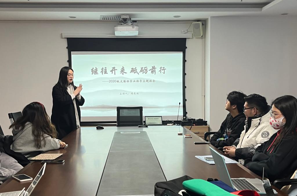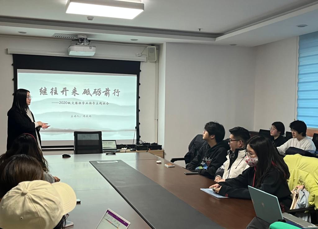 2020级文博班举办了学业经验分享交流会,邀请了2018级文博专业周辰雨同学作了主题报告。会议由柴光进同学主持,2020级文博班全体同学参加了会议。