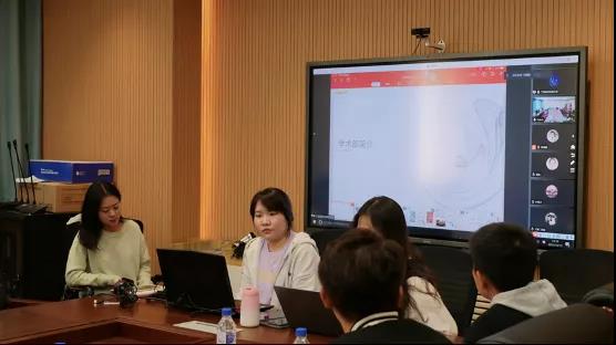 会议主要由研究生会成员高铷婧、晁颖主持,各部门负责人也通过远程连线的方式参与了此次会议。