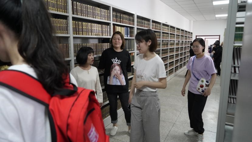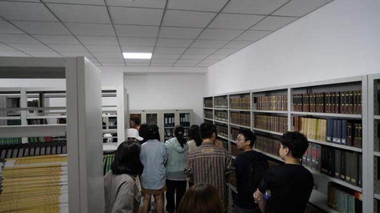 师生抵达吉林文化大厦后,在副所长谢峰老师、文物保护中心副主任李丹老师和科技信息部主任任蕾老师的热情接待讲解下,同学们参观了位于2楼的文物库房和4楼的文献资料室,文物库房里按吉林省地区和遗址单位的类别陈列着一架架文物,资料室里则整齐摆放着不同系列与不同国家语言文字的书籍和杂志,同学们在李丹老师细心讲解下井然有序,排队参观。