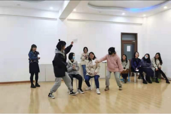 此次团体心理辅导活动分为三个阶段:暖身阶段、班会阶段和结束阶段。在暖身阶段的“情绪大头贴”活动中,同学们先后表演随机抽取的情绪卡上的情绪内容,其他同学猜情绪内容,其中亦不乏欢声笑语,在欢快的氛围中让同学们能够表达情绪、辨识情绪。在班会阶段,大家共守保密原则,写出自己近期的烦恼、困惑,根据每组某一同学的具体困扰排练情景剧,大家创作激情热烈,创新十足,表演阶段爆笑不断、叫好连连。表演结束后,采用击鼓传花的形式让同学们分享参与感受。