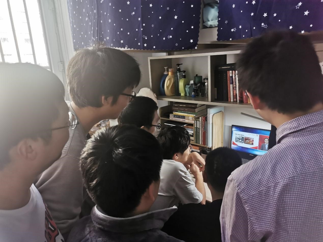 2018级考古班团支部组织支部全体成员“同上‘党史’思政大课”,同学们在寝室、教室等场所,通过手机、电脑等终端观看课程直播,共同聆听这堂思政大课。