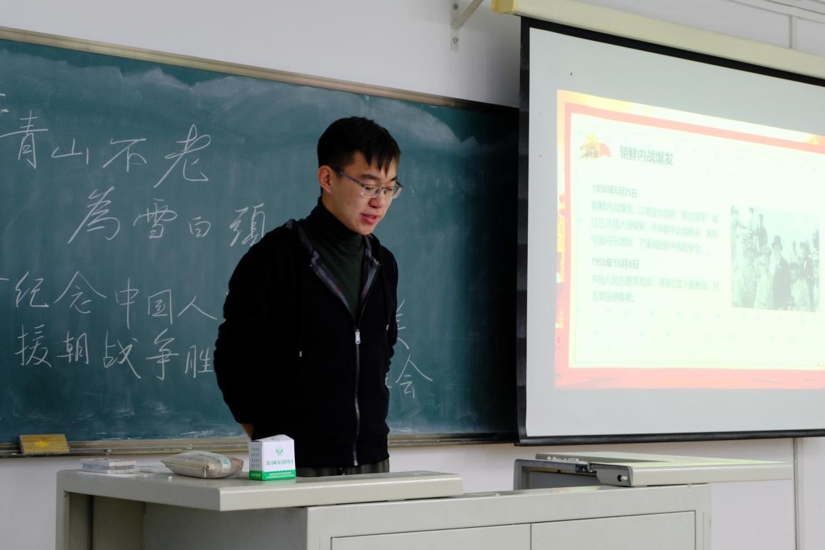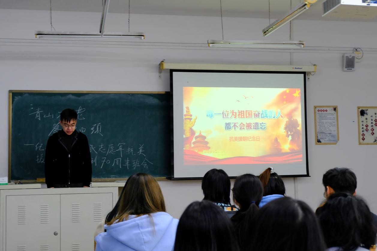2019级本科生于经信教学楼D110教室开展了主题为“青山不老,为雪白头”纪念中国人民志愿军抗美援朝战争胜利70周年主题班会,班会的主要内容是观看抗美援朝专题纪录片《为了和平》,本次班会由温景超主持,91网
