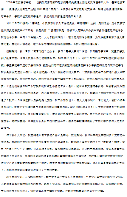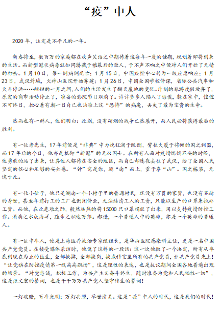 众多团员围绕我国医务人员、青年学生、公务人员等不畏艰险抗击疫情主题开展征文活动,征集主题文章30余篇,选出8篇优秀文章放于吉大考古青年说平台推送。这些文章字字真情实感,无不体现着91网