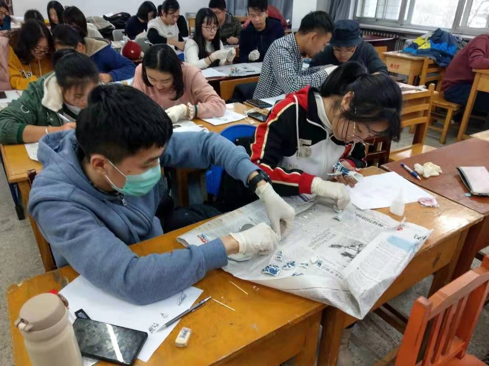 的刘爽老师为参加活动的同学们做讲座。刘爽老师以二十多年的文物保护实践经验,用深入浅出的语言向给大家普及了有关文物保护的一些知识,例如瓷器修复的要点,中日等国家在文物保护上所采取的不同做法等等,让参与的同学了解了什么是文物保护,如何进行文物保护,思考文物保护的意义。在简短的讲座结束后,由文物爱好与保护者协会的工作人员带领大家依照程序进行瓷器的模拟修复。