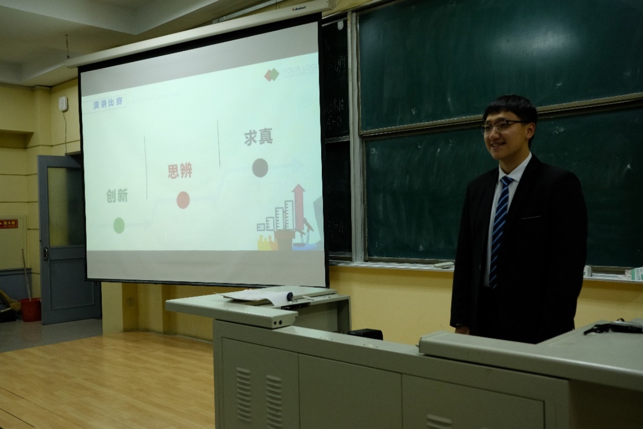于2019年9月16日开展了“精诚合作”演讲比赛,同学们踊跃参加,上台发表自身对“精诚合作”这一主题的认识和理解。在演讲比赛中,同学们进行了一番慷慨激昂、逻辑清晰的演说,字里行间都透露出对“精诚合作”的重视。在一个演讲结束后,台下的同学们可以就演讲者某些观点进行评价、质询。而最终,评委会结合自身感受和台下提问综合给予演讲者一个评分。在演讲比赛结尾,辅导员杨晨老师上台总结各位同学发言,并鼓励同学们在日后生活中运用“精诚合作”的精神来面对日后生活中的难题。