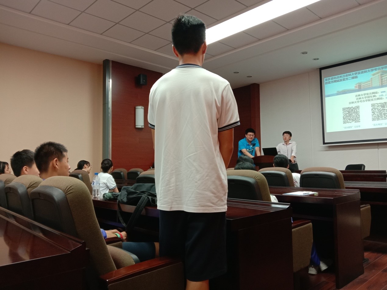 再次,硕士研究生陶志远、步藩共同回答了同学们关注的几点问题,方面涉及报考、招生、就业等几个方面。具体问题有文科生、理科生在学习科技考古的过程中,有什么不同;学生本科期间,能否参加考古活动;我院本科生是否可以直接就业相关情况等等。会议在祥和的气氛中结束。