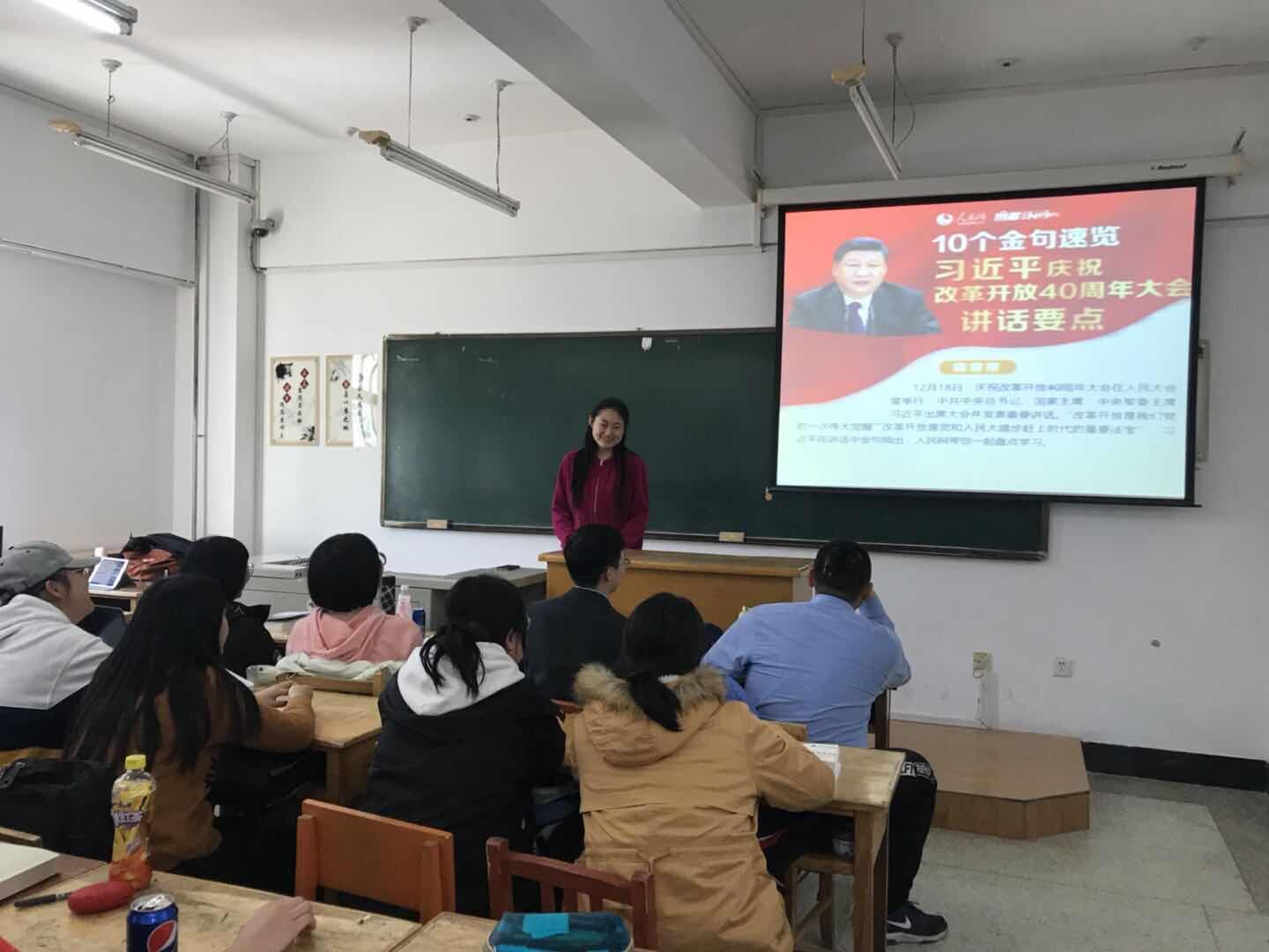 18级两个班的团支部分别于中心校区逸夫楼302教室组织开展了青年大学习活动,活动主题是“享改革开放成果,担未来发展之责”,本次活动旨在回顾了解改革开放40周年历程与历史成就,明确改革开放的内涵与意义,思考新时代下的改革开放,凝聚学生思想共识,强化学生担当作为。