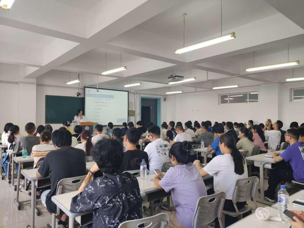 于第三教学楼402教室开展新生入学健康教育讲座,辅导员马嘉男老师以及全体2024级新生参与本次讲座。