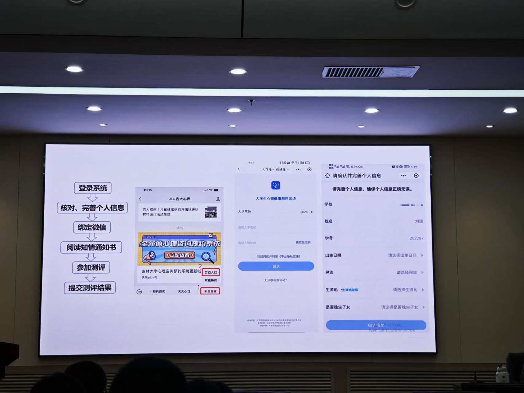 心理健康是学生身心健康的重要组成部分。马老师向大家讲解心理健康的重要性,心理测评流程和注意事项。同学们认真作答相关问题,完成心理测评。