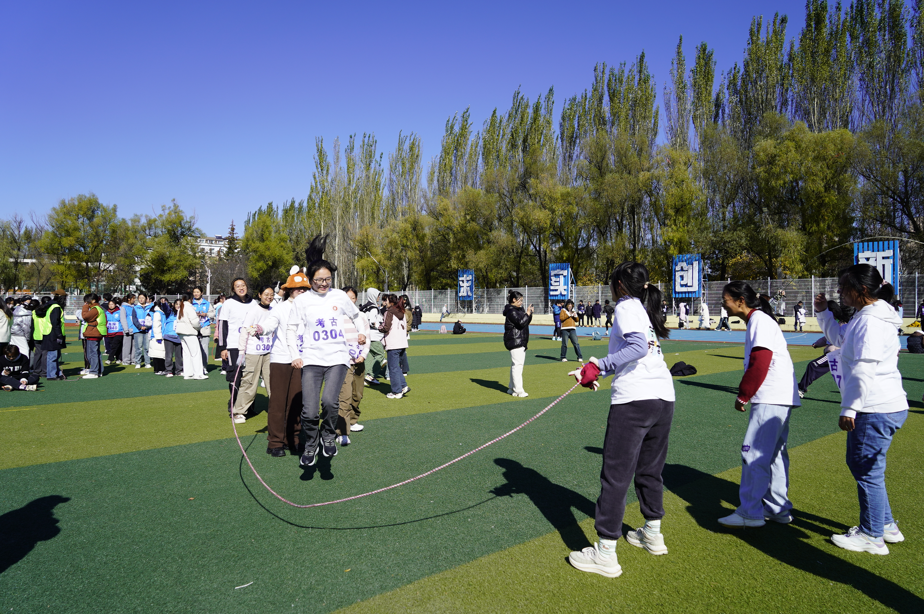 团体项目方面,同学们积极参与到了三分钟10人8字跳绳项目中。赛场上,她们团结自信,彰显了91网