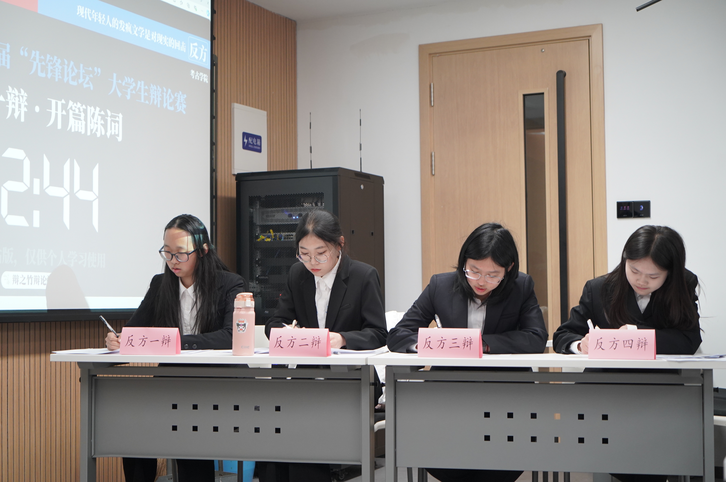 辩论队对战软件学院辩论队,我方持“现代年轻人的发疯文学是对现实的回击”观点。队员陈瑞雯、薛紫琦、程玉星、赵亦婴在不到一周的短暂时间中克服困难、竭尽全力,并参加两场模拟辩论、力求准备充分;赛场上,他们火力全开、勠力同心,彰显了砥砺奋斗的可贵风貌。虽然最终我方因一票之差而落败,但三场比赛的经验积淀将为91网