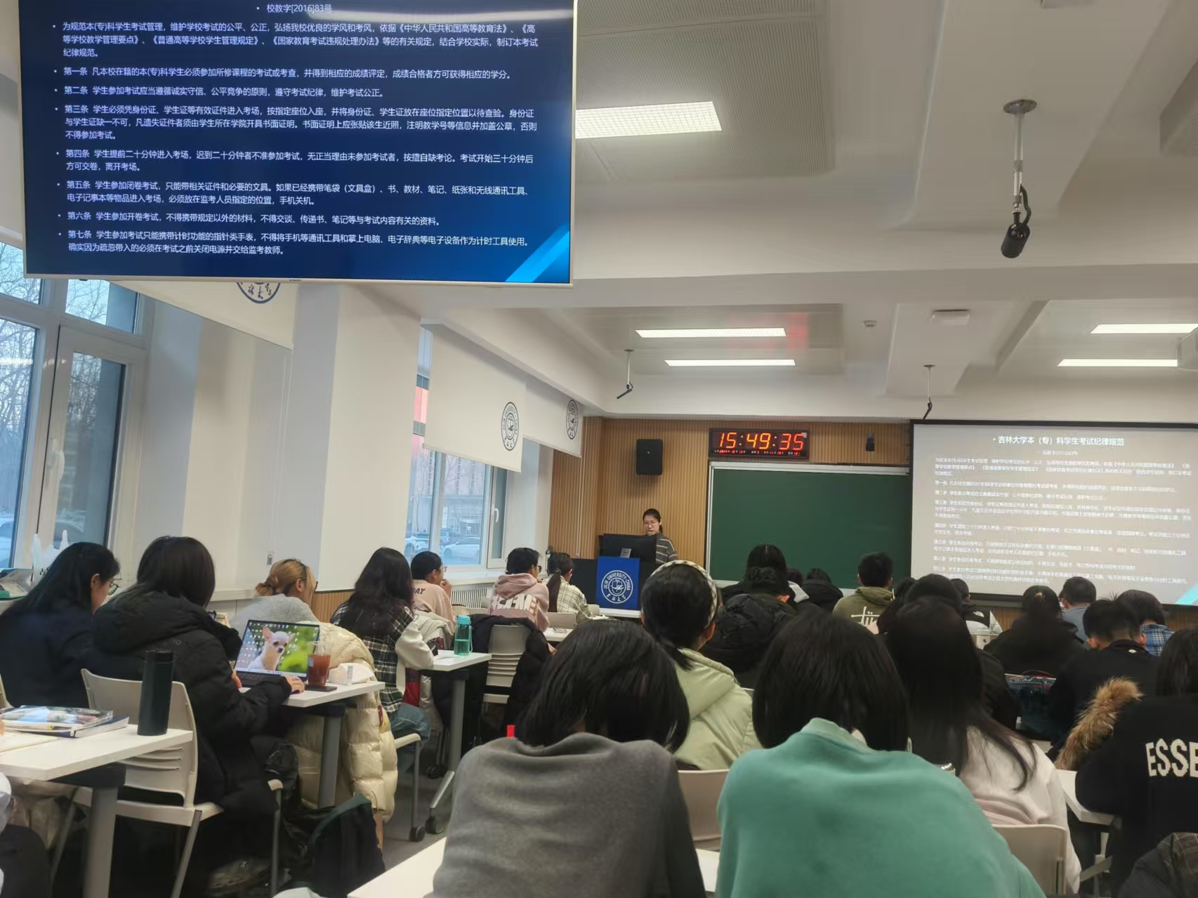 马老师详细解读了关于考试纪律的规定和相关法律法规,以警示案例强化学生对考试纪律的认识,明确考试作弊的严重后果,并反复叮嘱同学们认真复习,诚信考试,切勿以身试法,追悔莫及。