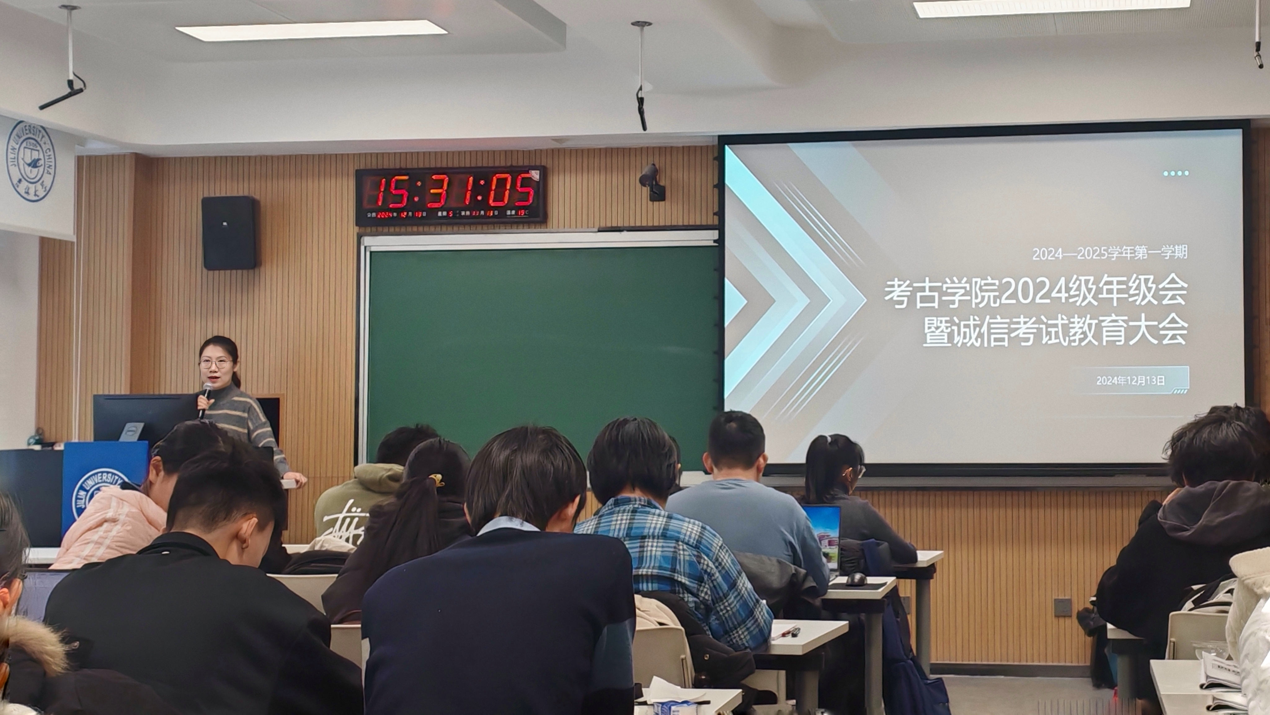 2024级于逸夫教学楼111教室召开年级会暨诚信考试教育大会。会议由辅导员马嘉男老师主持,2024级全体本科生参加。