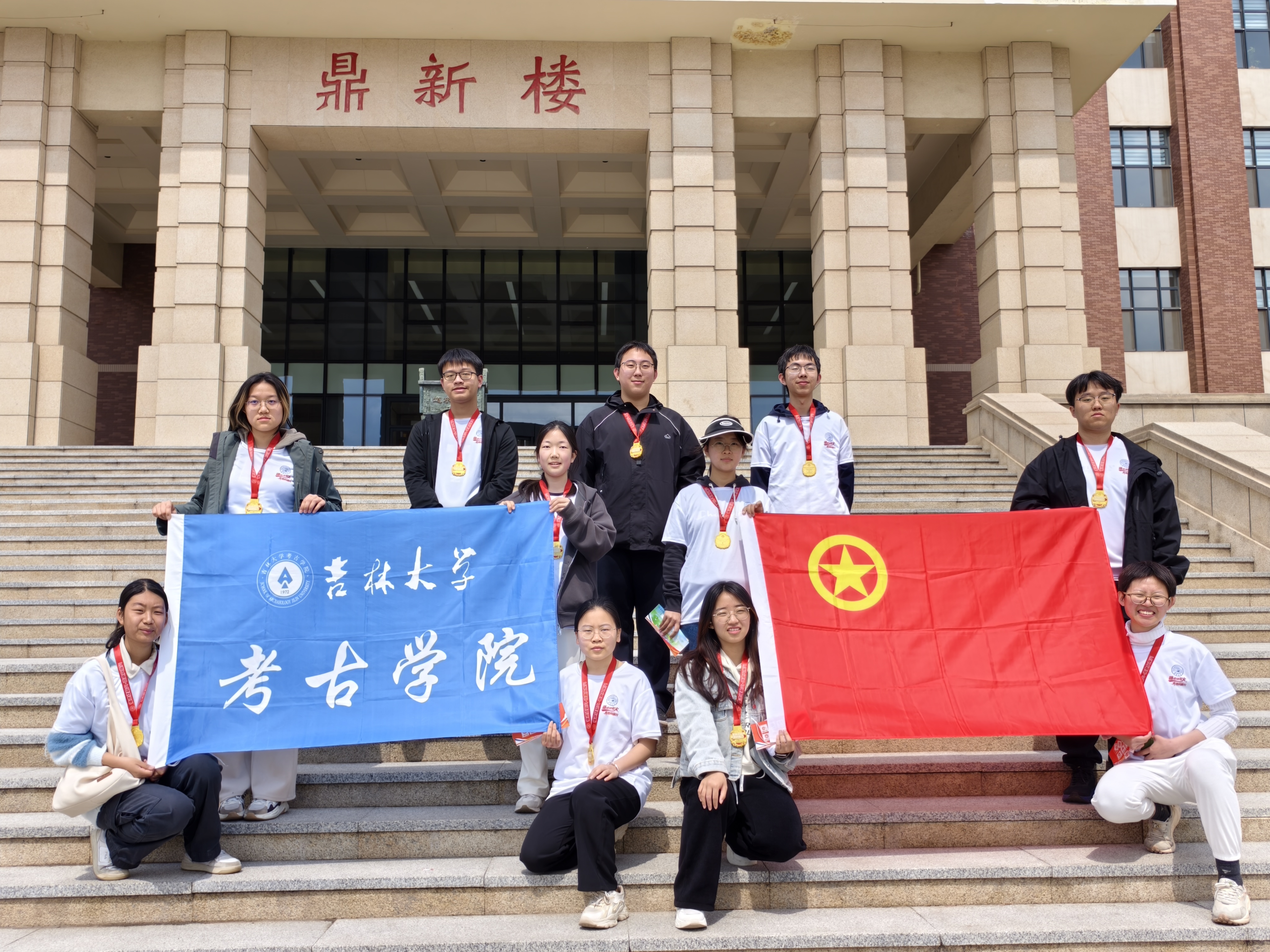 清晨与学院伙伴们集合,我穿上吉大徽章运动衫,手持双面集章卡开启征程;跳起略带笨拙却欢乐的运动操后,随队伍踏上集章之旅。尽管中途疲惫到几乎放弃,但“只剩两站”的信念支撑着冲到终点。拉伸操的活力指令、合唱团《我和我的祖国》的激昂歌声,让汗水浸润的坚持更显珍贵。手握鼎新楼图案的奖牌,与同伴在阶梯上笑着合影,蓝天下的疲惫瞬间化作暖阳般明亮的成就感——这场奔跑,是我们青春与热忱最生动的注脚。