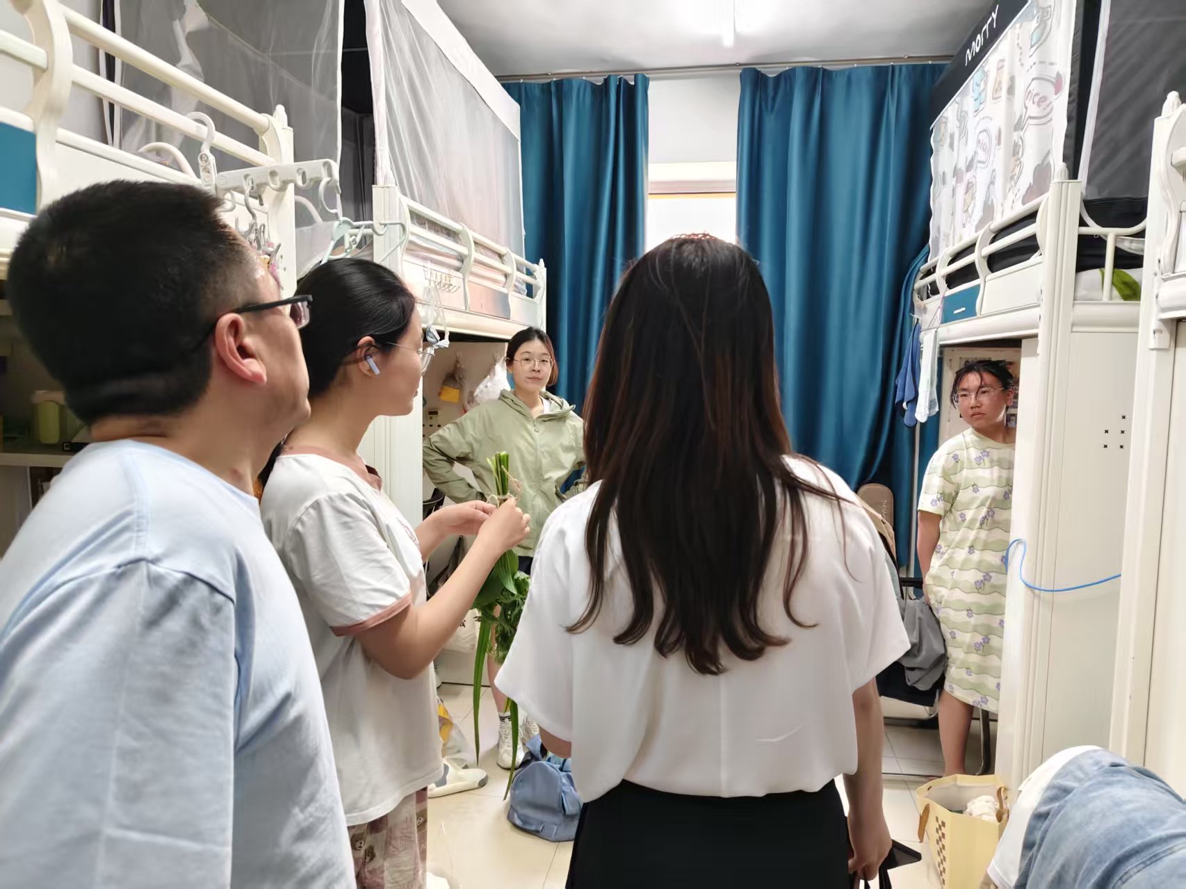 “同学们在校安心、顺心,就是我们最大的心愿,”副书记侯建峰亲切地说,“祝大家端午安康,学业进步!”真诚的祝福赢得同学们阵阵感谢。此次宿舍走访不仅传递了学院对学子们细致入微的关怀,更强化了师生间的情感纽带,为平安、温馨的节日氛围奠定了坚实基础。