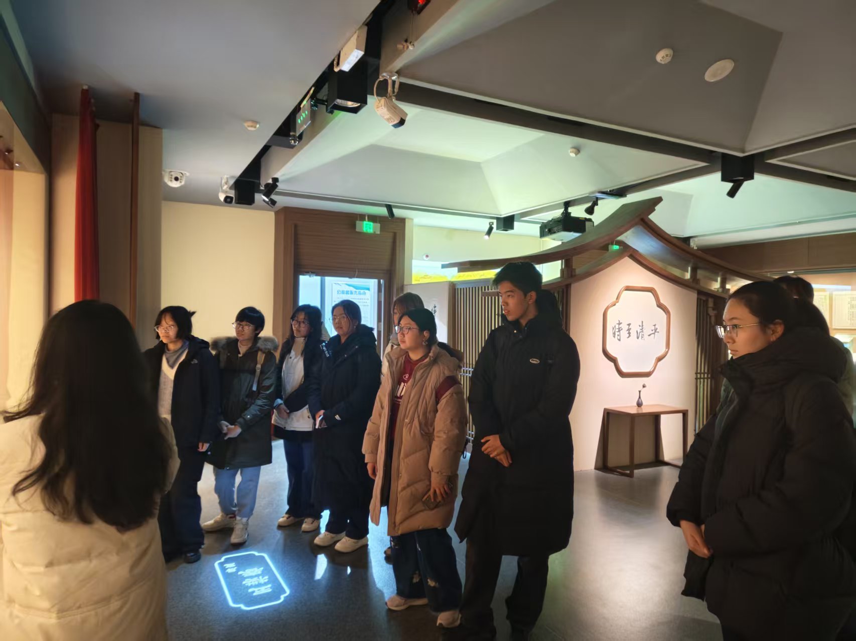 在讲解员带领下,学员们参观了“时至清平——宋代物质生活展”。展览通过宋画与文物组合,生动展现宋代社会生活风貌,互动式的参观方式让学员们沉浸其中。在“绿野先踪——东北史前生活展”中,学员们见到了课堂上学过的旧石器时代文物实物,对史前先民的智慧有了更直观的理解,在展柜前驻足沉思,体悟文明的曙光和历史的积淀。